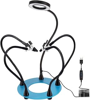 ENJOHOS Dritte Hand Löthilfe mit 3x LED Lupe, Helfende Hand mit Metallfuß, Lötstation mit 5 flexible Arme, Löten Halterung mit USB(Keine Adapter),Ideal zum Löten, für Hobbys(Kreisförmig)