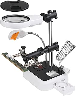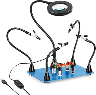 YSODFQL 3X Ständer Lupe Dritte Hand Lötstation Vergrößerungsglas Mit Standfuß Flexible Helfende Hände Mit Lötkolbenhalter Und Krokodilklemmen - Zum Löten, Reparatur,Hobby