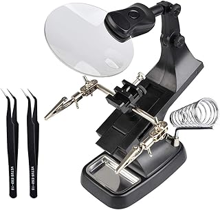 AZFUNN Helping Hand Lötstation mit 3.5X Lupe LED-Licht Einstellbare Hobby Lupe Ständer Dritte Hände Löten Werkzeug für Leiterplatten Löten