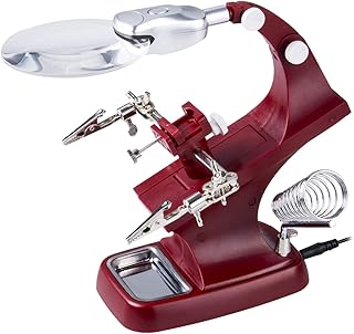 LED Dritte Hand Lupe Feinmechaniker, lupe mit licht und ständer Zum Löten, Reparatur, Hobby und Handwerk(rot)