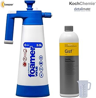 detailmate Vorwäsche Set: Koch Chemie GSF Gentle Snow Foam, Reinigungsschaum - Shampoo - Insektenlöser, Venus Super Foamer Cleaning Pro+ Viton 2L Box 2018 Model mit Box und Zubehör + Messbecher 50 ml