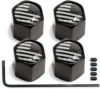 Ventilkappen, amerikanische Flagge, schwarzes, gedämpftes Aluminium, mit Gummiring für Reifenfelgen, Staubschutz für Autos, LKW, Fahrräder, Motorräder, Fahrräder (4 Stück)