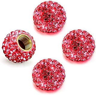 Ygapuzi 4Pack Bling Ventil-Schaftkappen, Kristall-Autoreifenventil-Schaftabdeckungen mit O-Ring, universelle Passform für Autos, LKWs, SUVs, Fahrräder und Motorräder, attraktives Auto-Dekor (Rot)