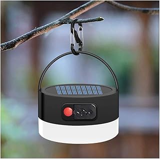 MD Lighting Kleine tragbare/hängende Solar-LED-Camping-Laterne, 4 Leuchtstufen, 300 lm, Tageslichtweiß, 6500 K, wasserdicht, solarbetrieben, Notfall-Camping-Lampe für Outdoor, Wandern, Angeln